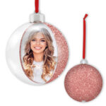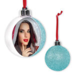 DESCRIPCIÓN Foto Copo de Nieve varios colores, bola navideña con foto, fabricada en plástico, mitad roja con decoración de purpurina y mitad transparente, nuevo sistema de tope de purpurina para evitar que la purpurina se disperse, personalizable con fotos, para colgar, idea original de regalo, decoración o adorno navideño, regalo personalizado.