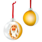 DESCRIPCIÓN Bola de Navidad Satén Dorado, Bola de Navidad con foto, fabricada en plástico, mitad dorada y mitad transparente, personalizable con fotos, para colgar, idea original de regalo, decoración o adorno navideño, regalo personalizado.