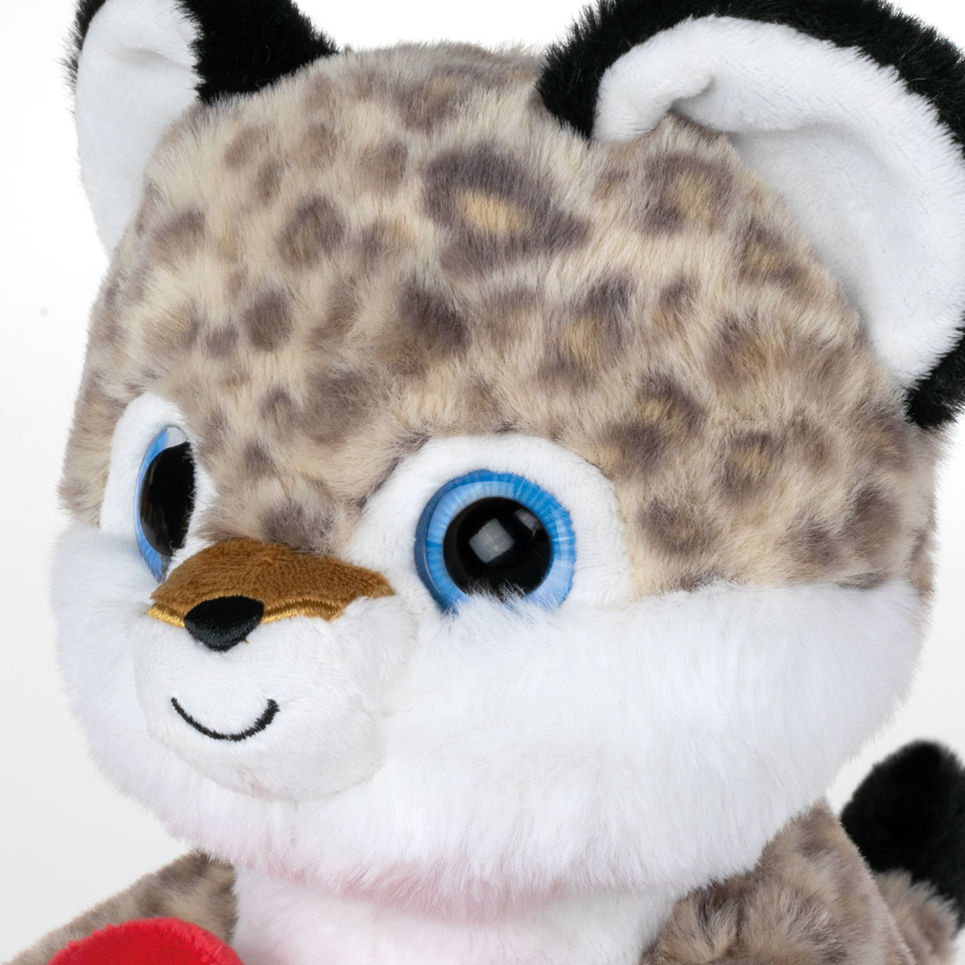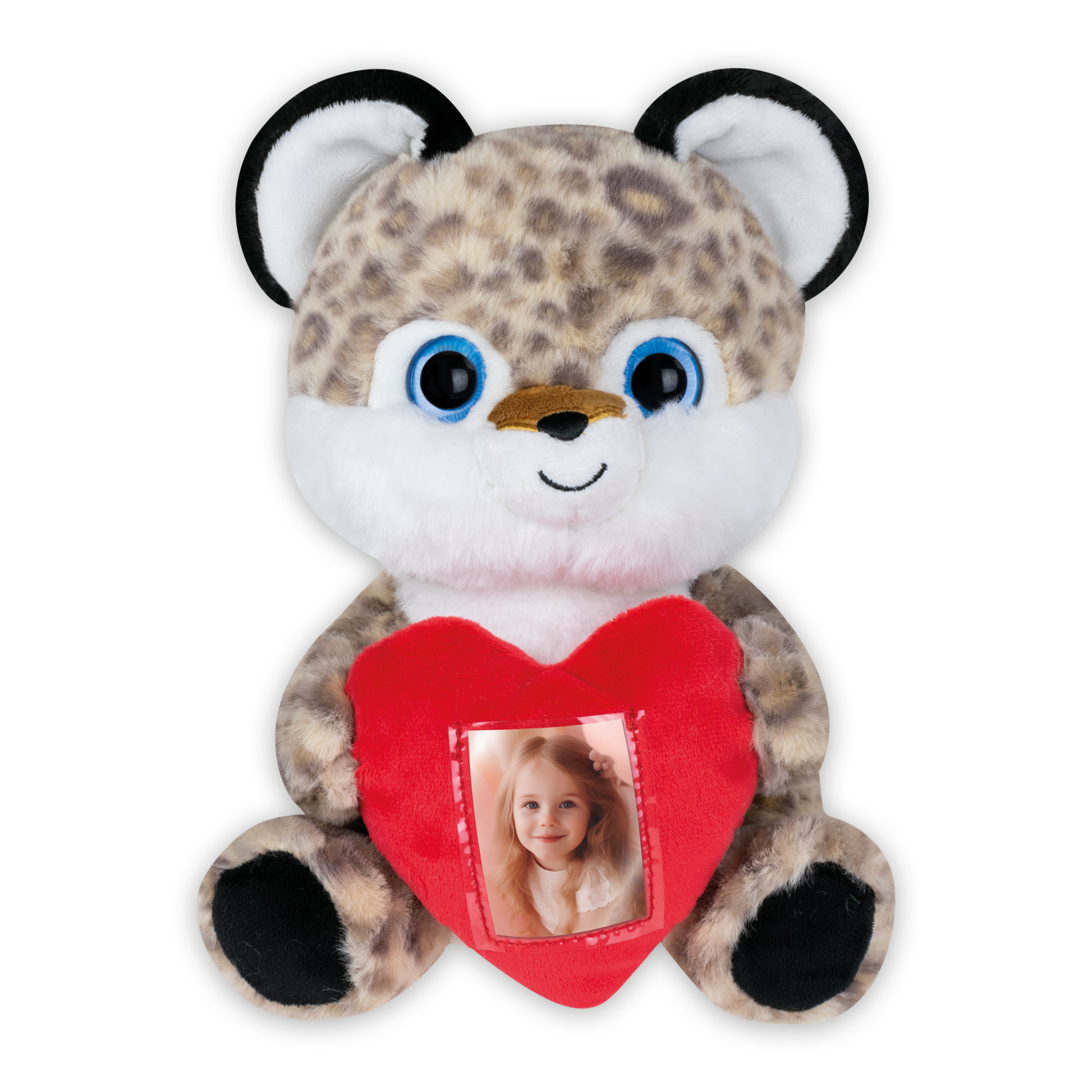 Peluche Photo Leopard suave gatito de peluche manchado, color beige, con corazón rojo para foto, temática de amor, apto para el hogar y la oficina, idea de regalo original.